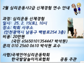 25년 2월 심리운동사2급 신체경험 연수 안내